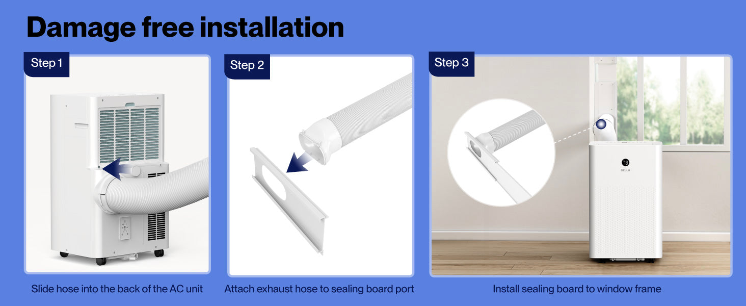 DELLA offers a 30-day money-back guarantee for window air conditioners, portable air conditioners, and tower fans.