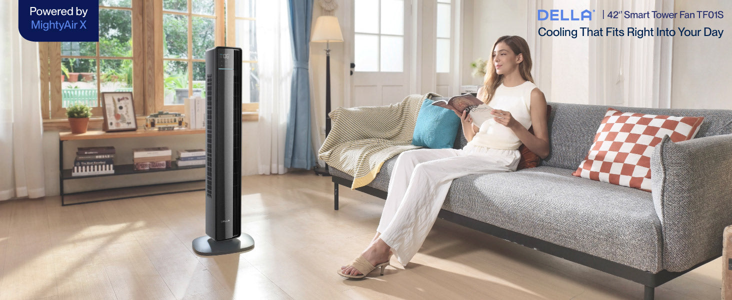 Stay Cool with Smarter, Stronger Airflow - Meet the Della 42" Smart Tower Fan TF01S.