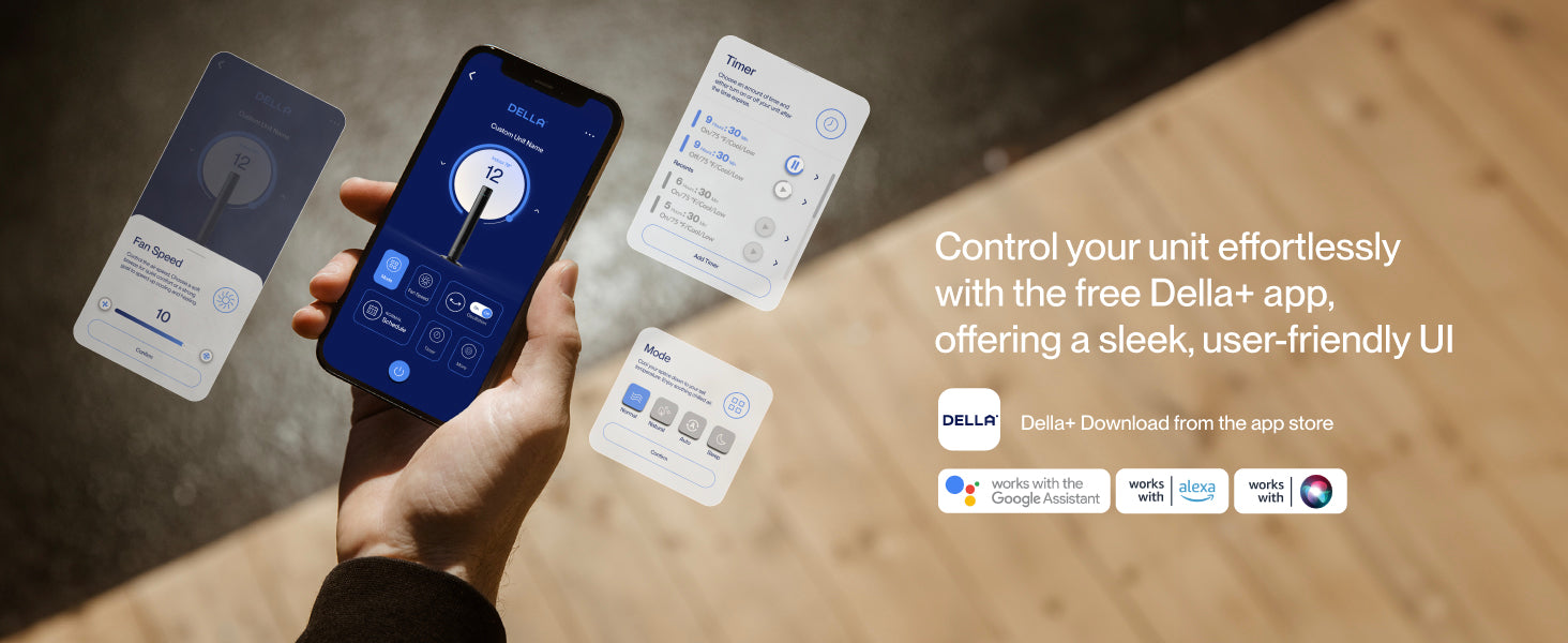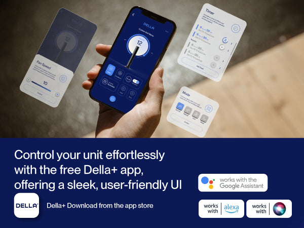Enjoy full control your way - use the remote control, Della+ app, or hands-free voice control via Amazon Alexa or Google Assistant.