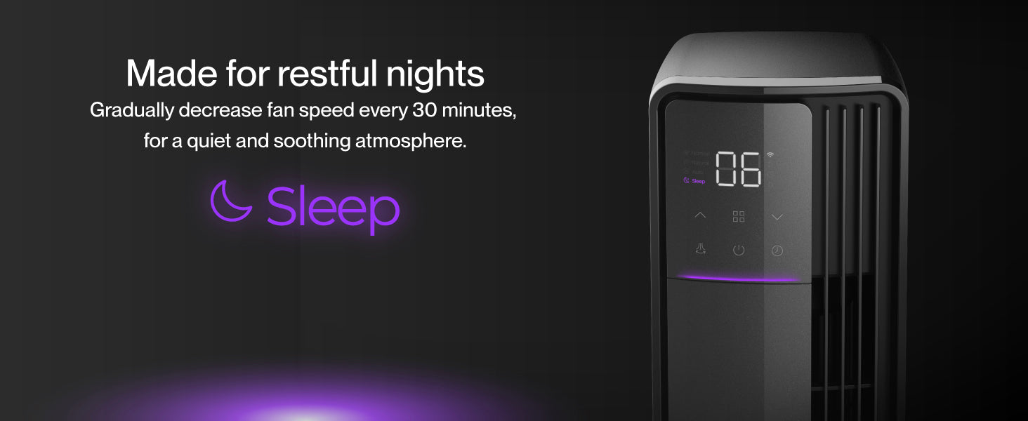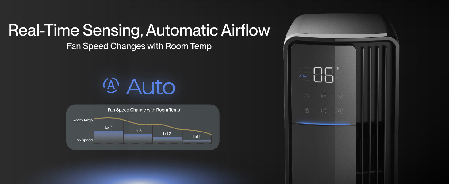 Designed for quiet sleep and all-day comfort, it runs at just 23dB, making it the perfect quiet fan for bedroom use. Select from 12 speeds, 4 modes (Normal, Sleep, Natural, Auto), and a 24-hour timer to customize your experience.