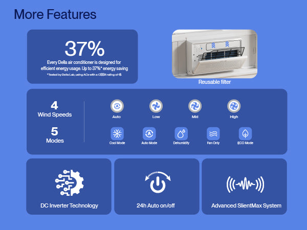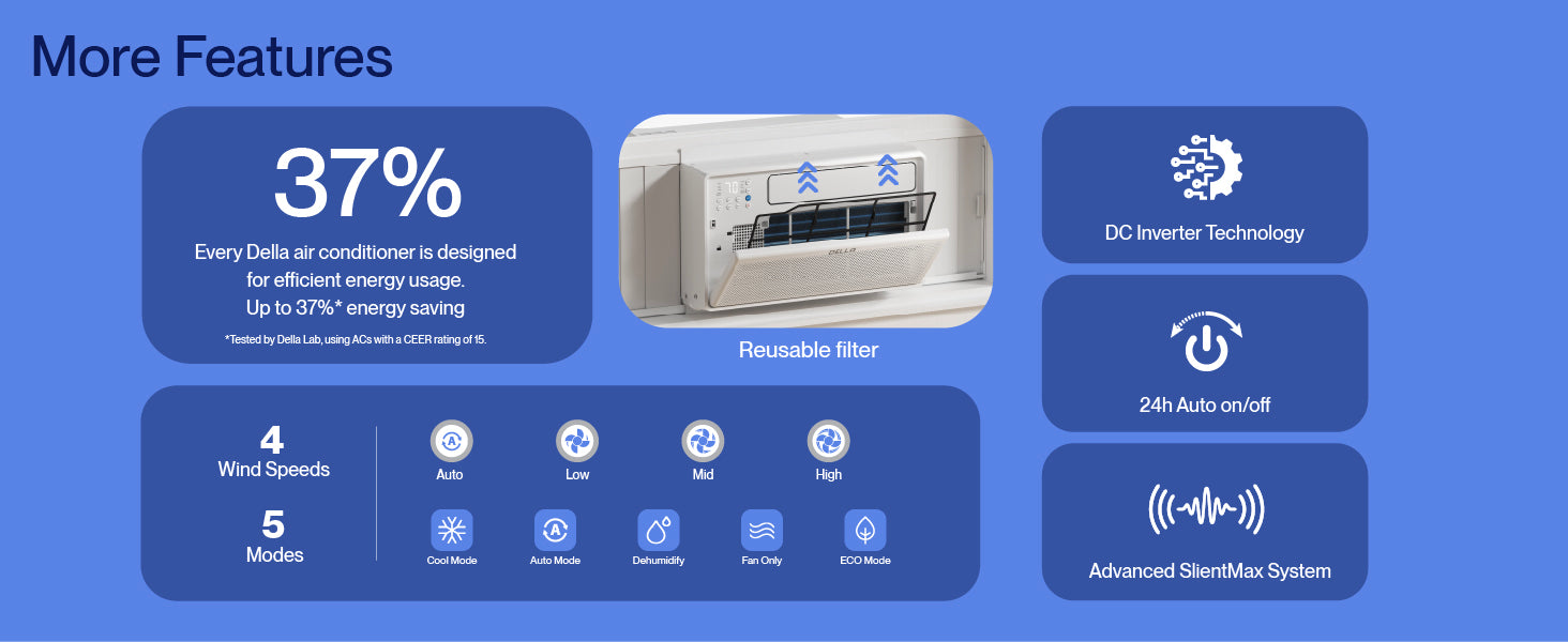 DELLA offers a 30-day money-back guarantee for window air conditioners, portable air conditioners, and tower fans.