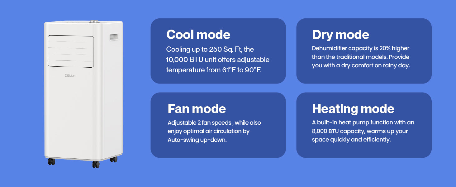 DELLA offers a 30-day money-back guarantee for window air conditioners, portable air conditioners, and tower fans.