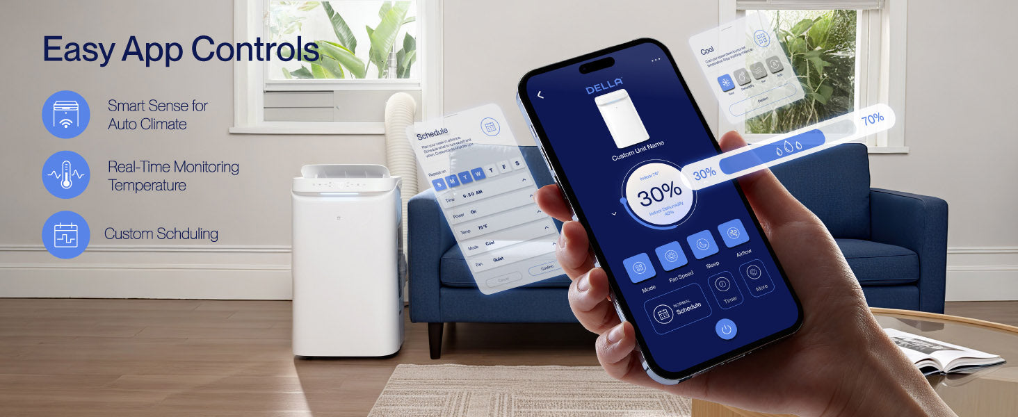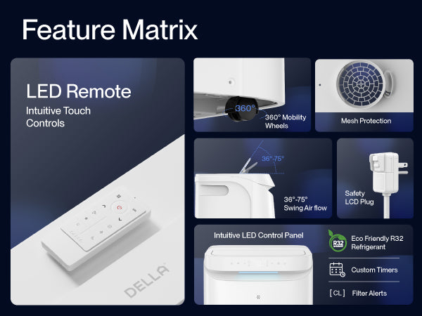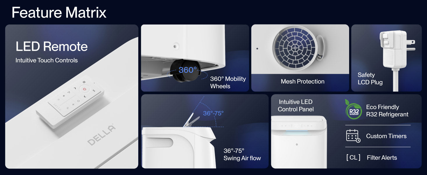 DELLA offers a 30-day money-back guarantee for window air conditioners, portable air conditioners, and tower fans.