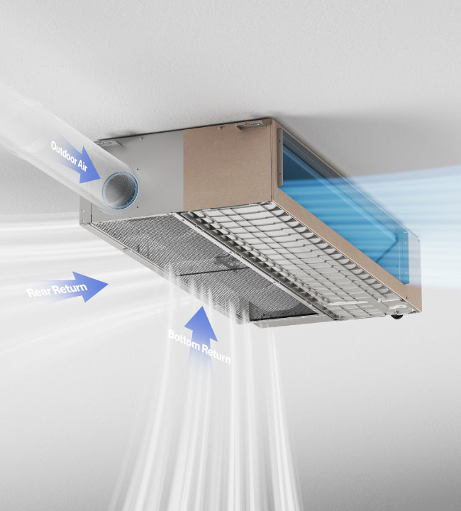 With up to 0.4 in. WC static pressure supports complex duct layouts.