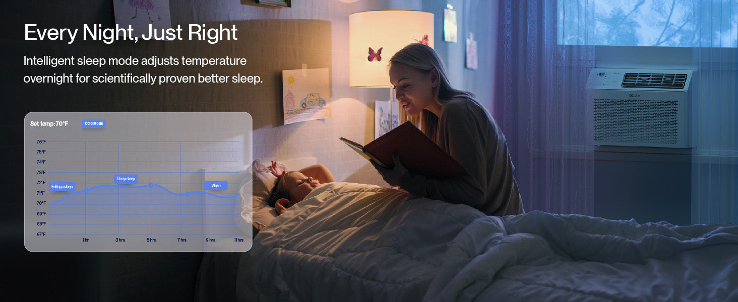 The Eco Mode fan and compressor shut off temporarily when the room is cool enough, saving you time and money.