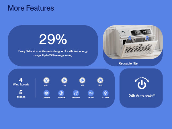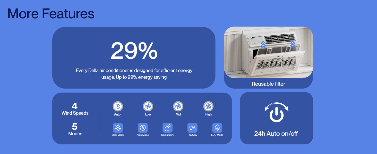 DELLA offers a 30-day money-back guarantee for window air conditioners, portable air conditioners, and tower fans.