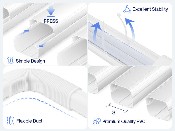 Wide Application: Our-grade professional Mini Split Line Set Cover is designed for wide compatibility, fitting most systems from any brand. The 3" version is suitable for air conditioning equipment ranging from 7,000 to 24,000 BTU, while the 4" version is suitable for air conditioning equipment ranging from 7,000 to 36,000 BTU.