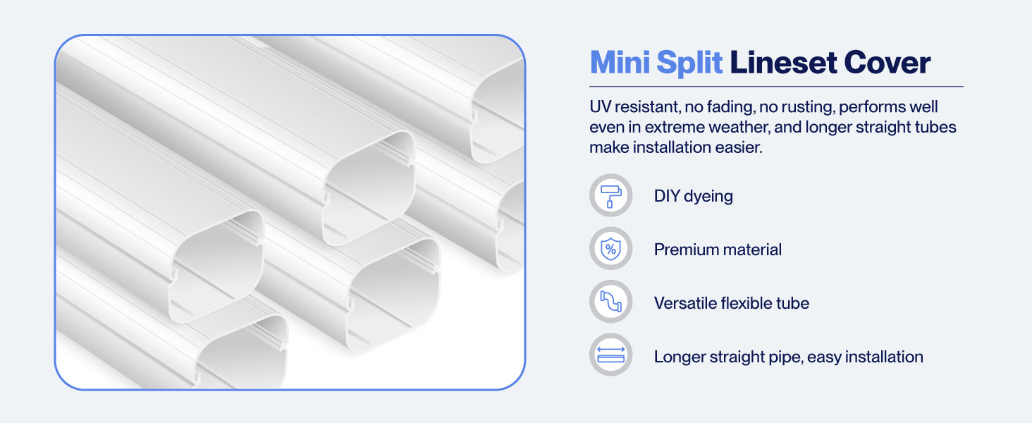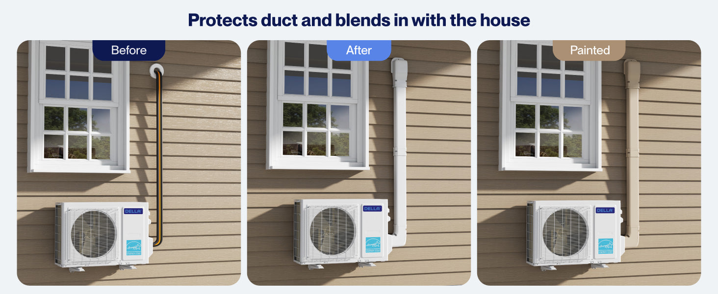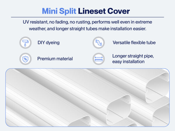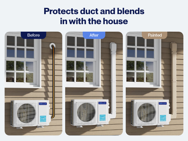 Wide Application: Our-grade professional Mini Split Line Set Cover is designed for wide compatibility, fitting most systems from any brand. The 3" version is suitable for air conditioning equipment ranging from 7,000 to 24,000 BTU, while the 4" version is suitable for air conditioning equipment ranging from 7,000 to 36,000 BTU.